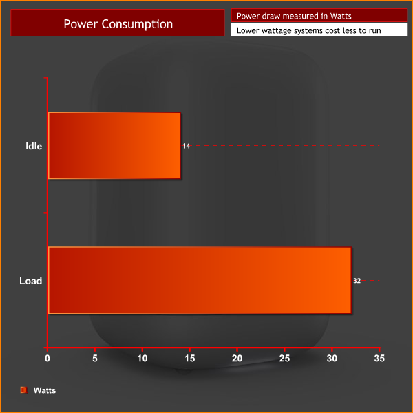 As you can see, temperatures inside the Revo One are absolutely fine – a peak of 79 Celsius during Prime95's Small FFTs test is warm but well within the thermal limits of the CPU. Power draw is also just what we would expect from a system based on the Broadwell-U architecture.