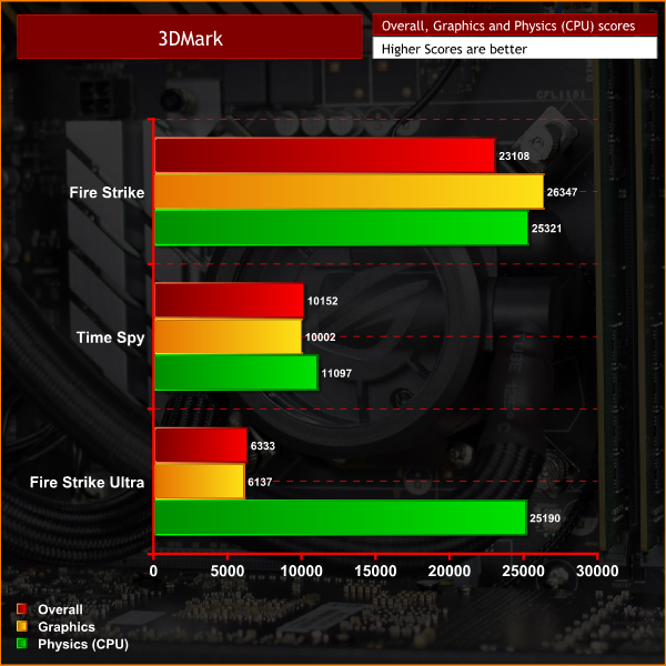 Our 3DMark scores are also right up there, though the graphics score is a few hundred points lower than we saw from our Founders Edition card. It is not a big gap at all, and it can be easily explained by the fact that is a reference-clocked card, not a factory overclocked model like all the aftermarket cards we have tested so far.