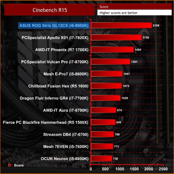 In what comes as a surprise to absolutely no-one, a PC with both the 9900K and RTX 2080 is fast. Seriously fast. If we start with a look at the CPU performance taken on its own, we can clearly see the benefits of moving to an 8-core processor in our Cinebench score, which is around 750 points higher than the 8700K in the PCSpecialist Vulcan Pro managed.