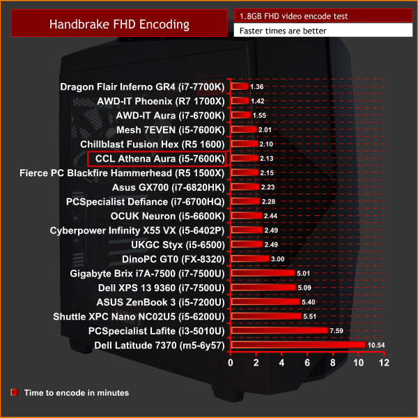 The i5 does better with HandBrake, though it is still behind the cheaper Ryzen 5 1600.