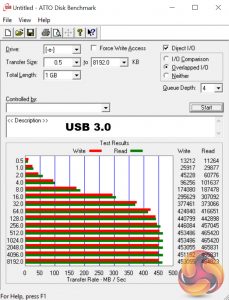Most importantly, it is capable of saturating the USB 3.0 bus, allowing us to test the speeds the USB 3.0 ports deliver. To test this, I ran both CrystalDiskMark and ATTO Disk Benchmark on the Trion 150 drive.