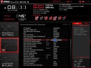 As it turns out, my sample was running an older BIOS version – specifically, EZD29IZ1.1C3. Despite being reset to ‘optimised defaults', the CPU section clearly shows a 180W Long Duration power limit, rising to 200W for the Short Duration.