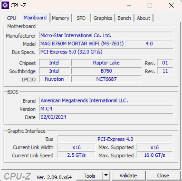 It's also worth noting that the One uses a custom BIOS for the B760M Mortar WiFi, so users would need to get future revisions from the Corsair website, and not from MSI as the fan curves and power limits have been specifically designed for the i500. I took a quick look in the BIOS myself and everything looked fine, most settings were left on auto but XMP was enabled as was resizable BAR, with the fan curve left on default.