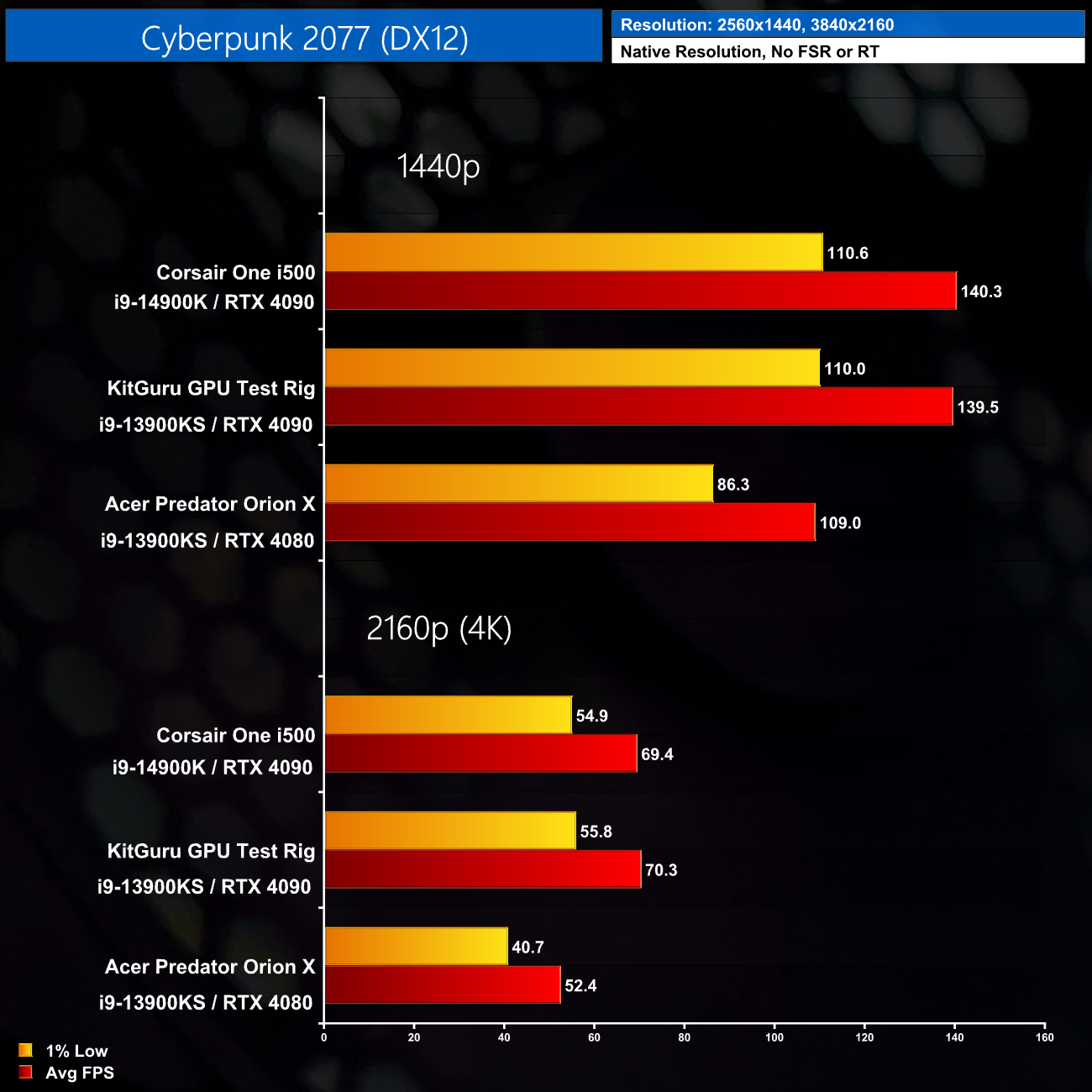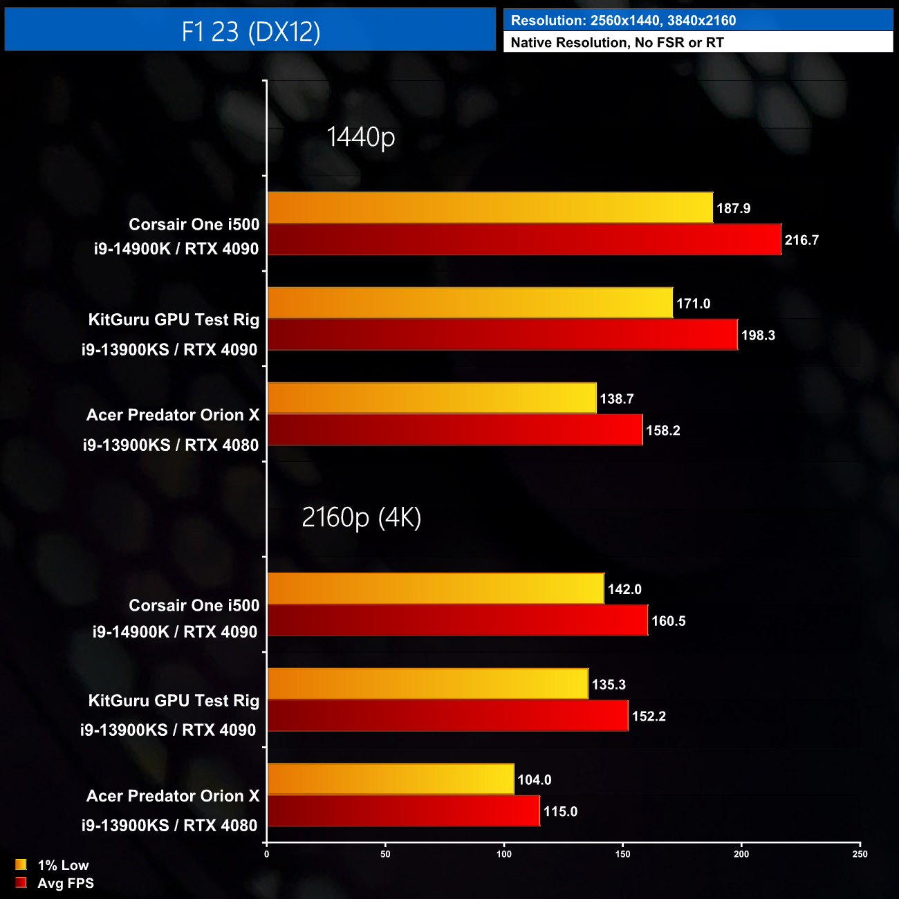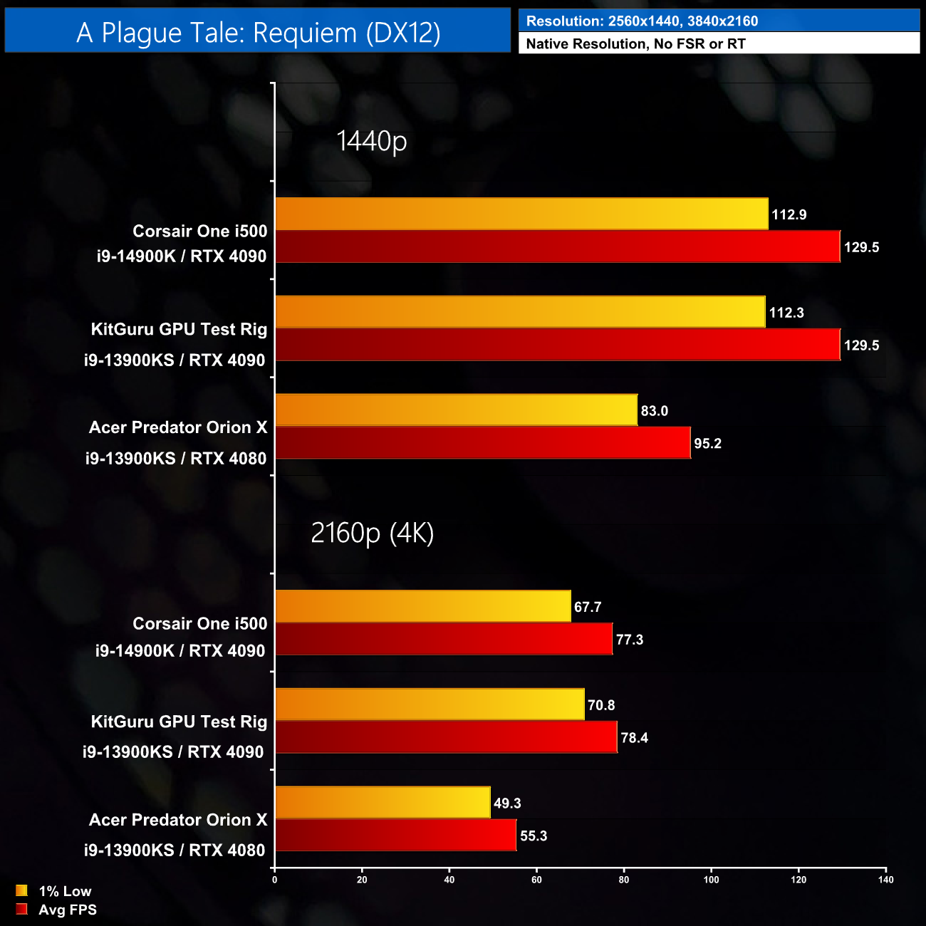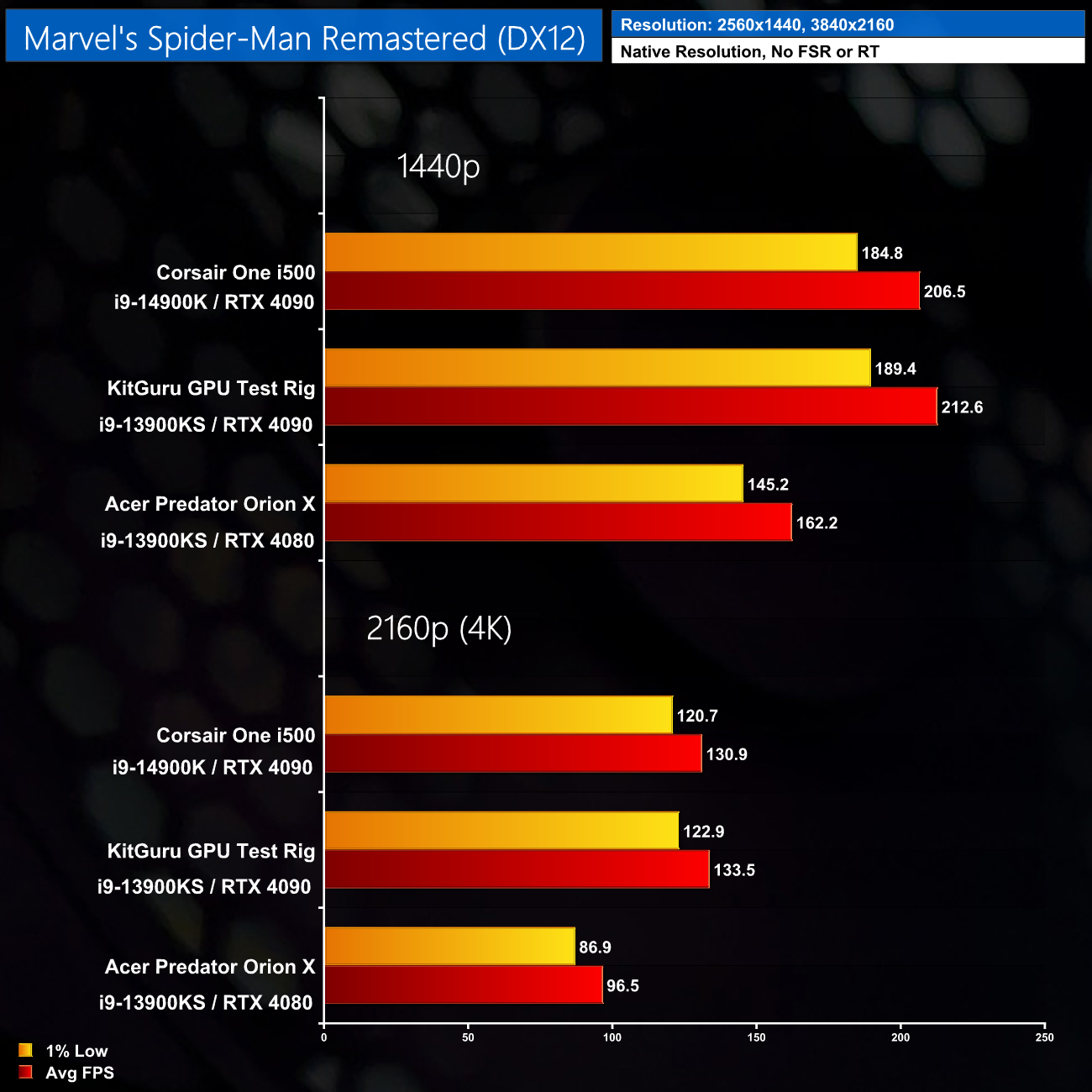 Here we test seven games, all benchmarked at 1440p and 4K resolutions using maximum image quality settings, but with no DLSS/FSR and no ray tracing.