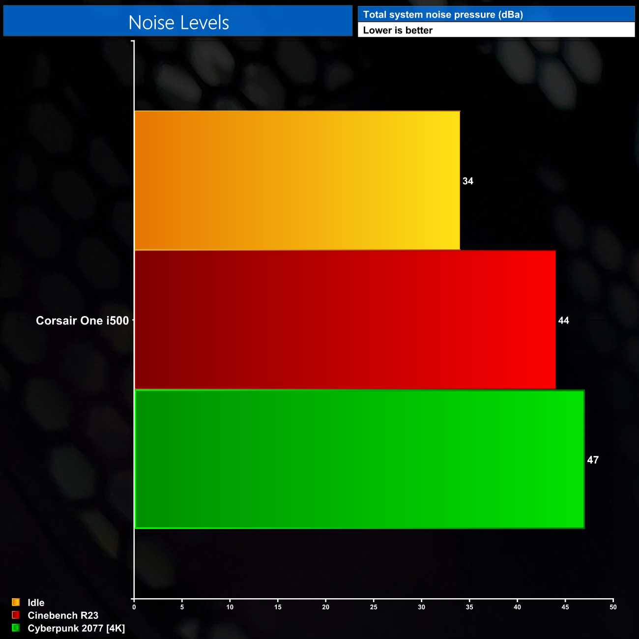 One downside for the One is that is does get loud under load. Considering its combination of 14900K and 4090 in a compact chassis, I suppose this was to be expected, but it could be distracting for some users – it didn't bother me when gaming with a headset on, though. There is just a touch of audible whine from one of the pumps inside the system when it is idling, but be sure to check out the video for a sound test.