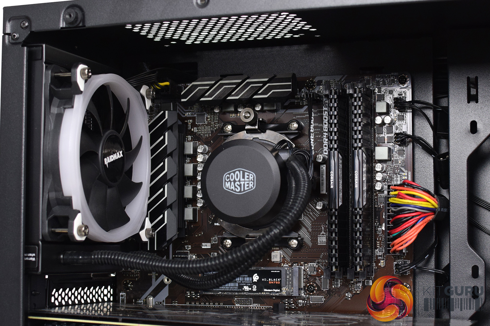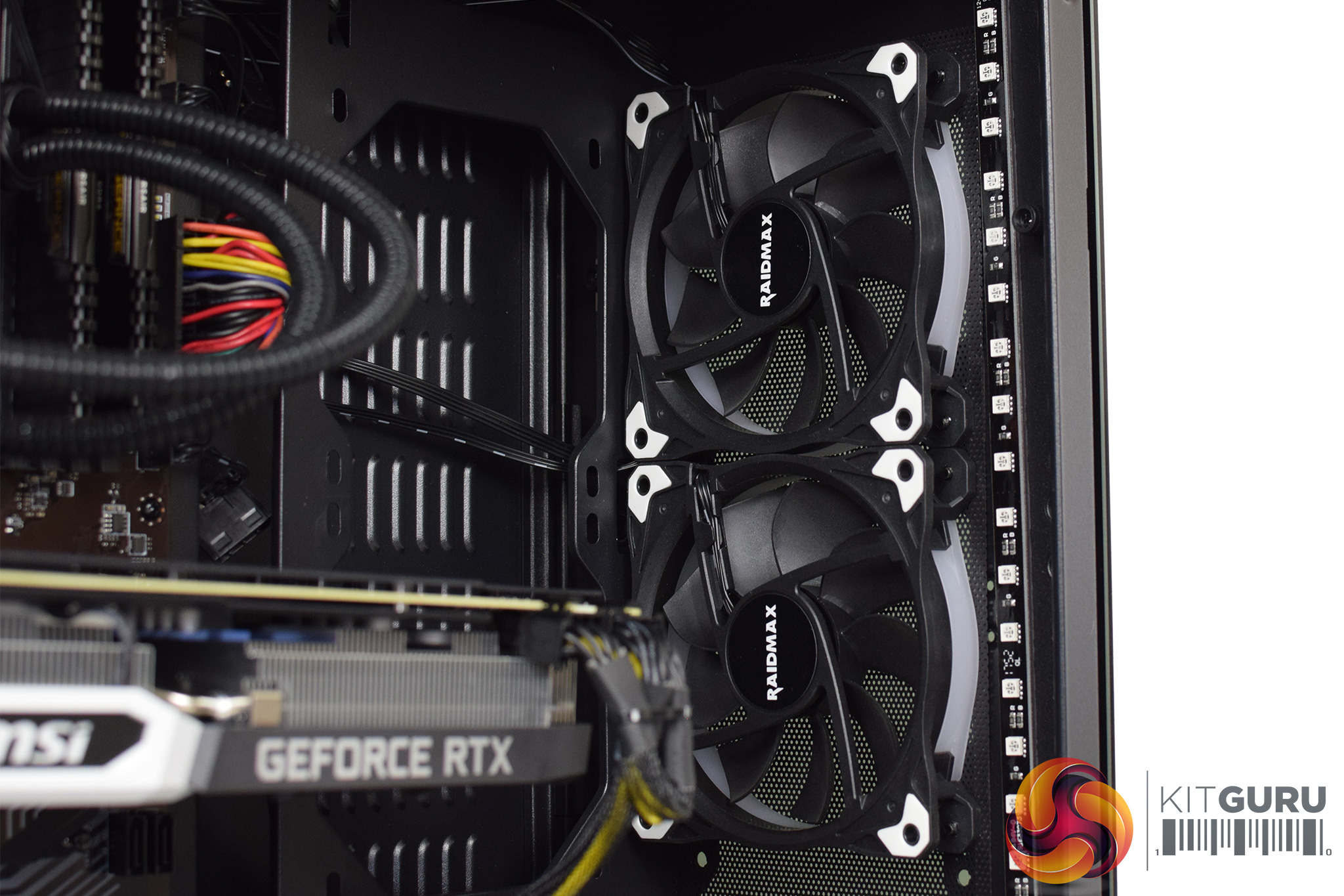 Other things to touch on include the Raidmax RGB setup. There are three RGB fans in the system, as well as one LED strip in the front and another in the roof. Rather than being controlled by the motherboard's RGB header, though, there is instead a small remote control used for adjusting the lighting. That's not necessarily a bad thing – though I think you'd be a bit annoyed if you lost the remote – but when I first received the system, the remote was only changing the colour of the front fan, and the other fans and LED strips would not change at all.