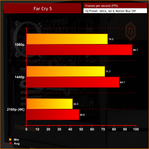 As for gaming, it's no surprise to see the RTX 2070 help this machine to excellent frame rates at 1080p and 1440p resolutions. If you're gaming at 1080p, a high refresh-rate monitor would definitely be a worthwhile purchase, and you will still achieve around 65-75FPS at 1440p depending on the title, so there is some good versatility there.
