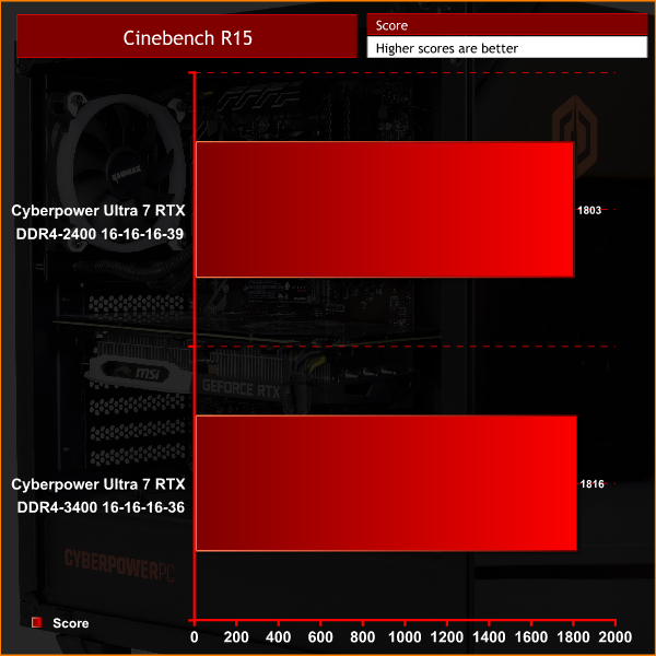 I mentioned on the first page that this system ships with 2400MHz DDR4 memory. There is 16GB of it, but Ryzen's performance scales well with faster memory due to the nature of the Infinity Fabric, so I wanted to see what difference we would get by swapping in something a bit faster. So, for the tests below, I used 16GB of G.Skill Sniper X memory running at 3400MHz compared against the default 2400MHz DDR4.