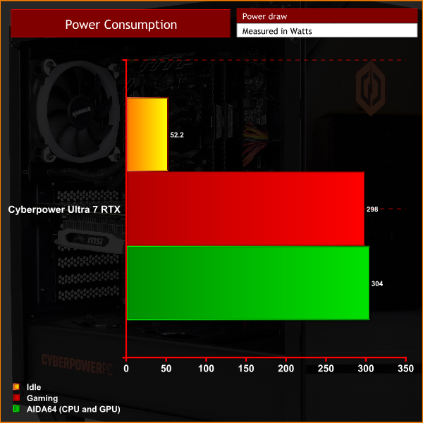 Lastly we come to power consumption, and under load the whole system pulls about 300W, putting the PSU at just over 50% load. That means this particular unit will be operating at pretty much maximum efficiency – though bear it mind it is only an 80+ White unit, so that isn't as high as I'd like in the first place.