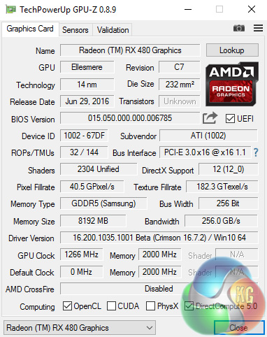 The FX-8320 is clocked at 3.5GHz and boosts to 4GHz. The RX 480 has a base clock of 1120MHz and boosts to 1266MHz. You can read our full review of the GPU over HERE.