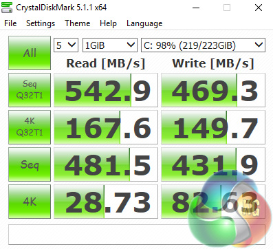 Here we test the performance of the 240GB Adata Premier SP550 SSD, using CrystalDiskMark 5.1.1 and ATTTO Disk Benchmark 2.47.