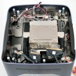 You can also remove the motherboard by taking out a bunch more screws and carefully unplugging a bunch of headers and connectors, revealing the Raptor Lake die on the other side and the VRM layout. Underneath the motherboard you can now also see the waterblock that contacts both the CPU and GPU, and the much more boring-looking black tubing that is part of the actual watercooling loop. I didn't remove the GPU but it is an MXM module, something that is pretty rare these days, so while an upgrade is theoretically possible, I have no idea if you'd actually be able to find a standalone MXM card, and it's not the most straightforward process to get inside the Megamini G1.