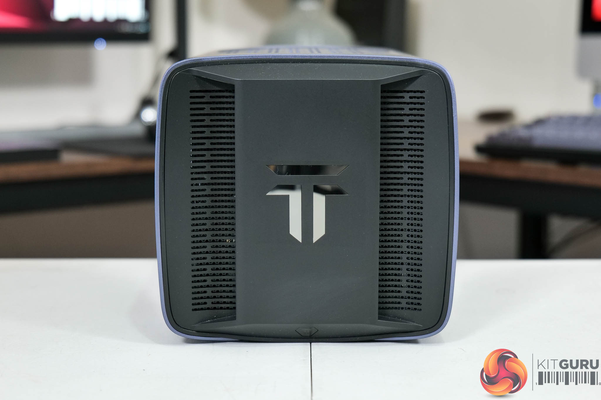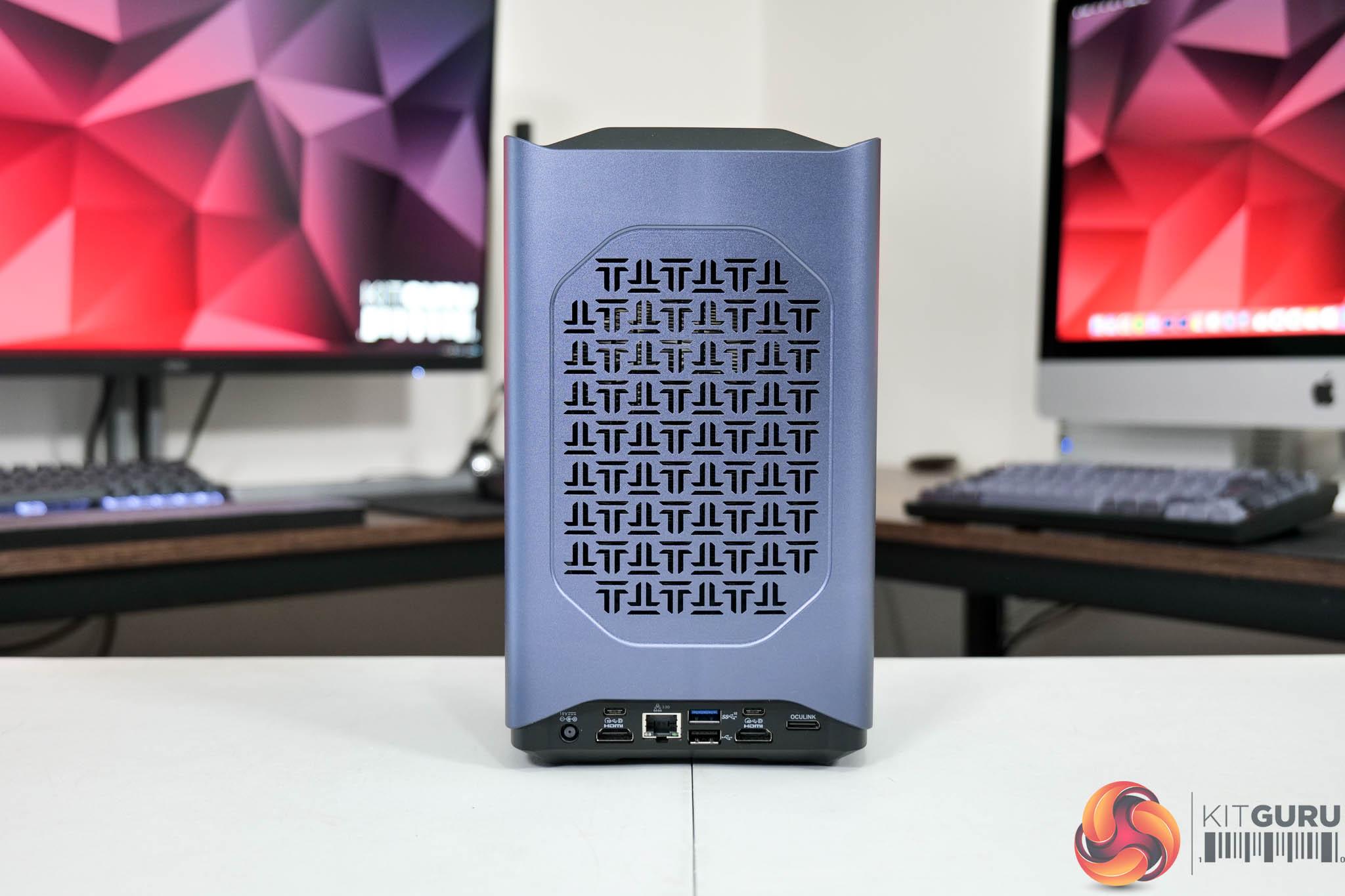 In terms of its design, Geekom Megamini G1 makes a great first impression. Not only is it very small, measuring 255 x 150 x 150mm giving it a 5.7L capacity, but it feels robust thanks to the use of metal panels. What really grabs your attention are the four u-shaped tubing runs visible through the windowed panels, it's visually unique and looks very futuristic – as well as the very nature of a custom-cooled setup in a PC this small is very cool indeed.