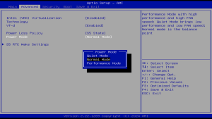 Still, as you can see here, the BIOS itself looks absolutely ancient, straight out of the Windows XP era, and there's very few settings you can actually change. The only thing of real note is the power mode setting, where there's a choice of Quiet, Normal and Performance modes. I tested the latter two and will breakdown the differences below.