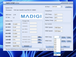 Just before that however, it is also worth showing the fan control software that Geekom provided. Again, this looks incredibly janky, it doesn't appear to have an English version, and to use it you have to hit the start button, then choose which fan speed percentage you want to apply to Fan 1 or Fan 2, then hit the Write button to actually apply the setting. By default there is some sort of auto fan curve, though you can't actually set a curve in the software, just one of the 10 fixed speeds.