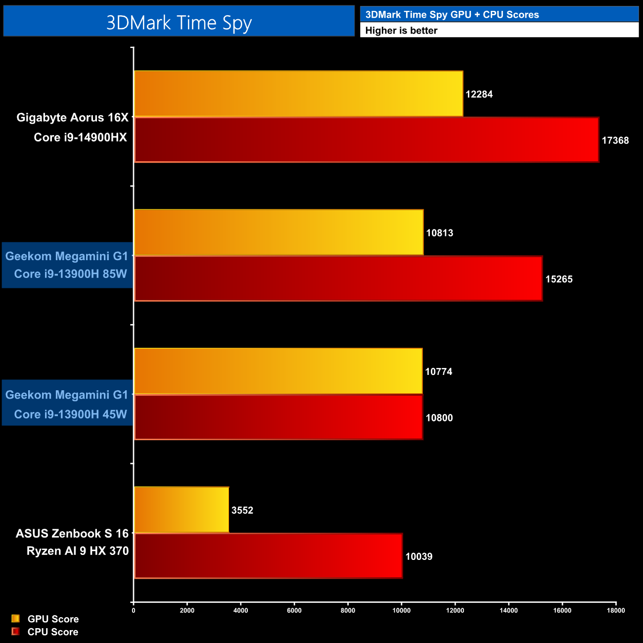 As for 3DMark Time Spy, the graphics score is obviously set by the RTX 4060 GPU and this doesn't change regardless of the power mode used.