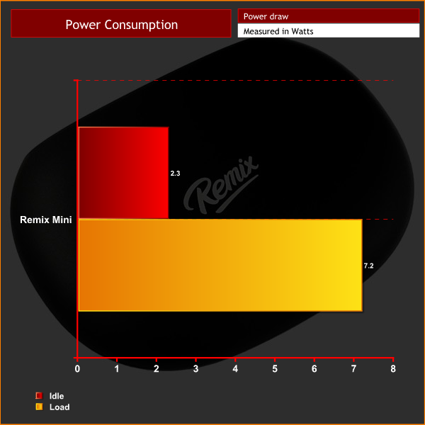 In order to complete our testing of the Remix Mini, I measured the power draw in Watts as you can see below.