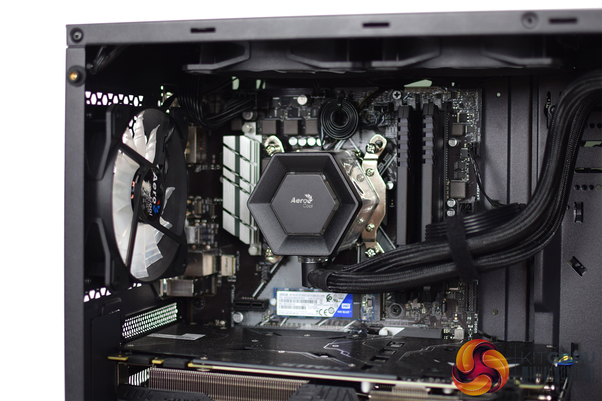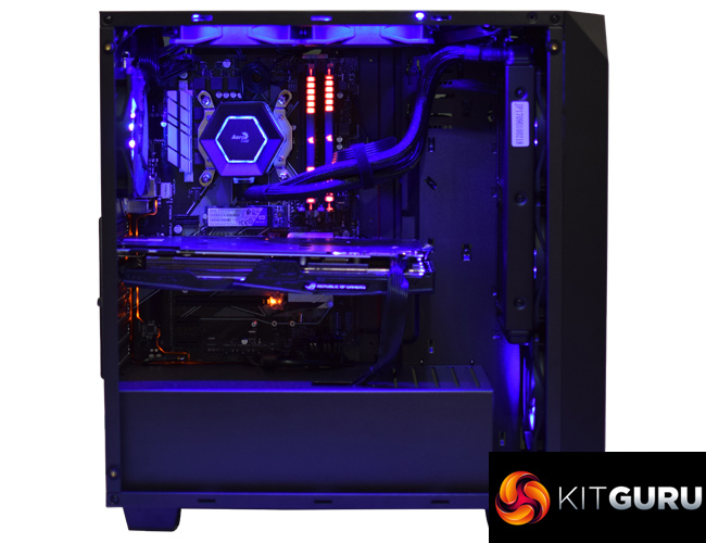 While the core spec looks fine on paper, Mesh has clearly tried to make sure the system itself looks good in the flesh as well. To achieve this, the E-Pro7 uses the striking Aerocool P7-C0 case – with two tempered glass panels – as well as the P7-L240 RGB liquid cooler, also from Aerocool. Add in several RGB fans, Corsair's RGB memory and an LED strip, the overall appearance of the system is quite striking.