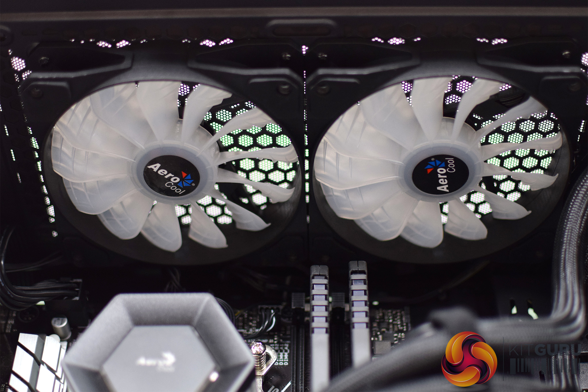 Noise levels are nothing to worry about, though, despite the fan configuration. The system is essentially silent while idling, and under load the fans do become audible but it's a relatively low-pitch whirr which doesn't get very annoying.