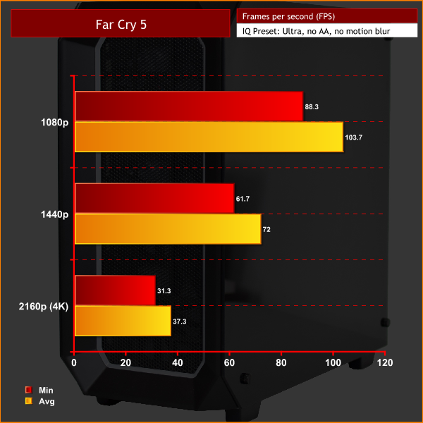 As we would expect from an i5-8600K paired with a GTX 1070, the E-Pro7 proves very capable for 1080p and 1440p gaming. An average of 72FPS in Far Cry 5 – at 1440p Ultra, no less – is particularly impressive.