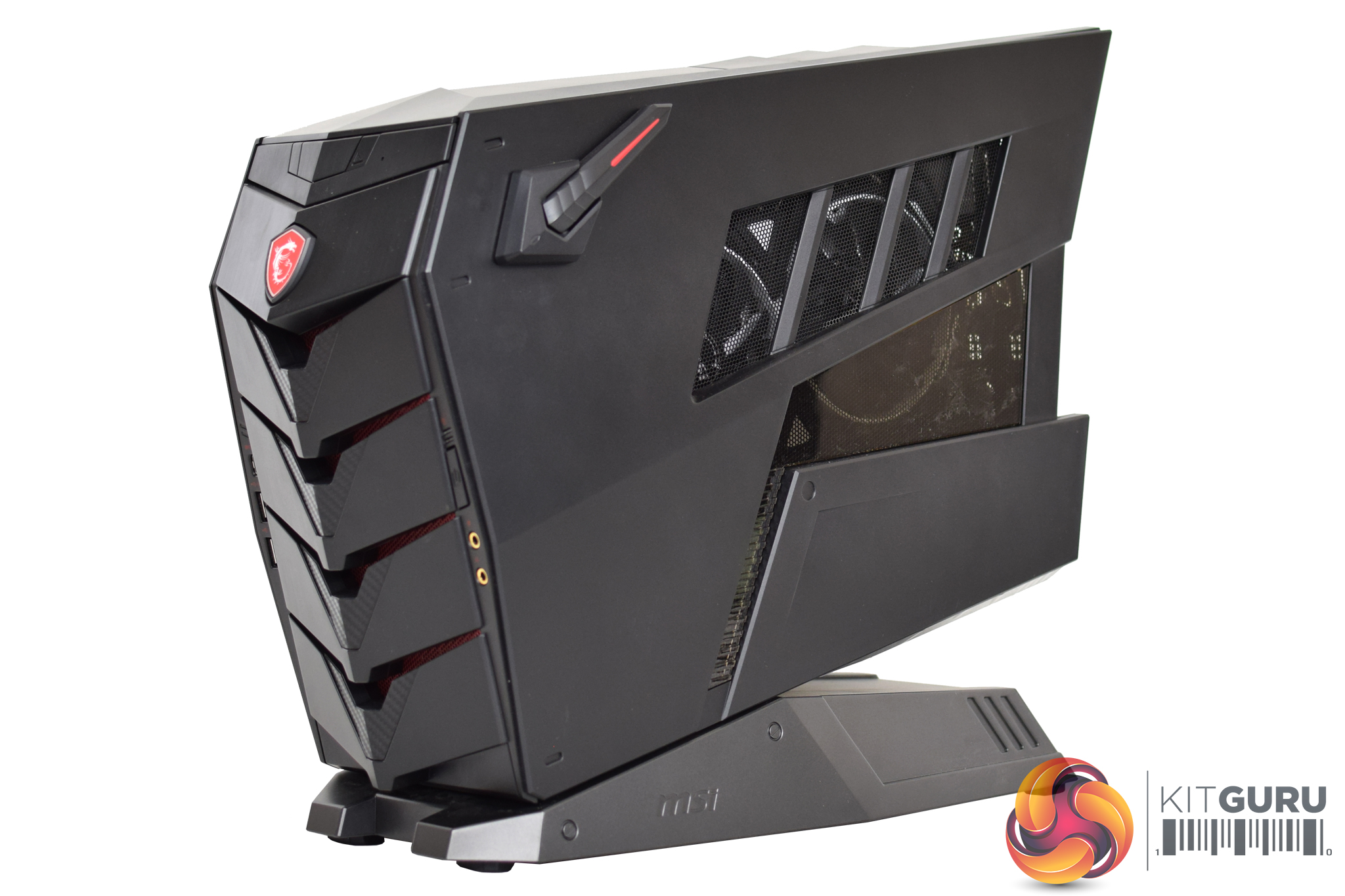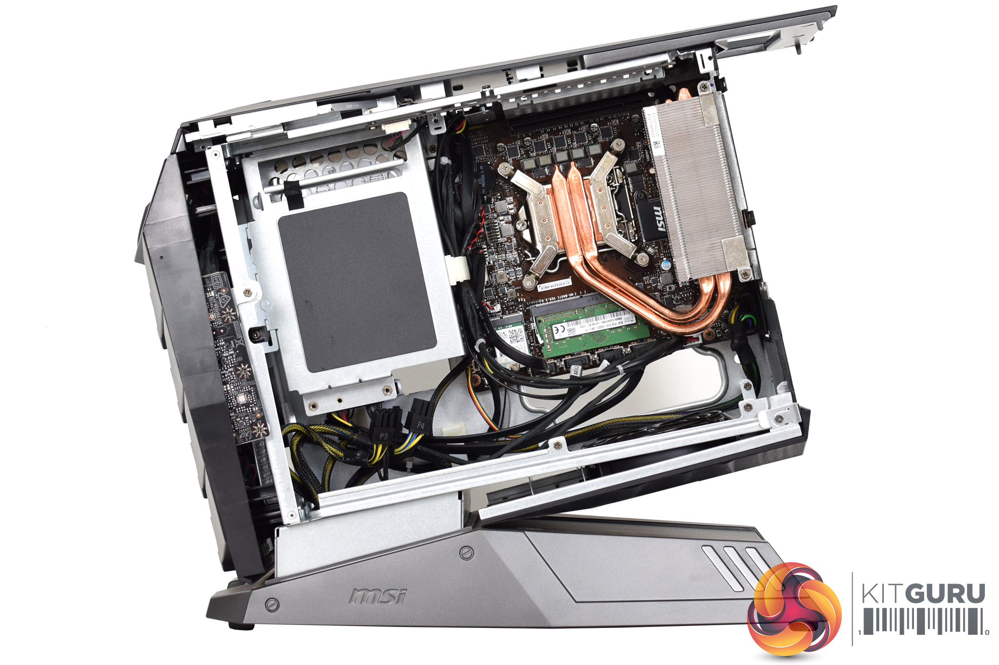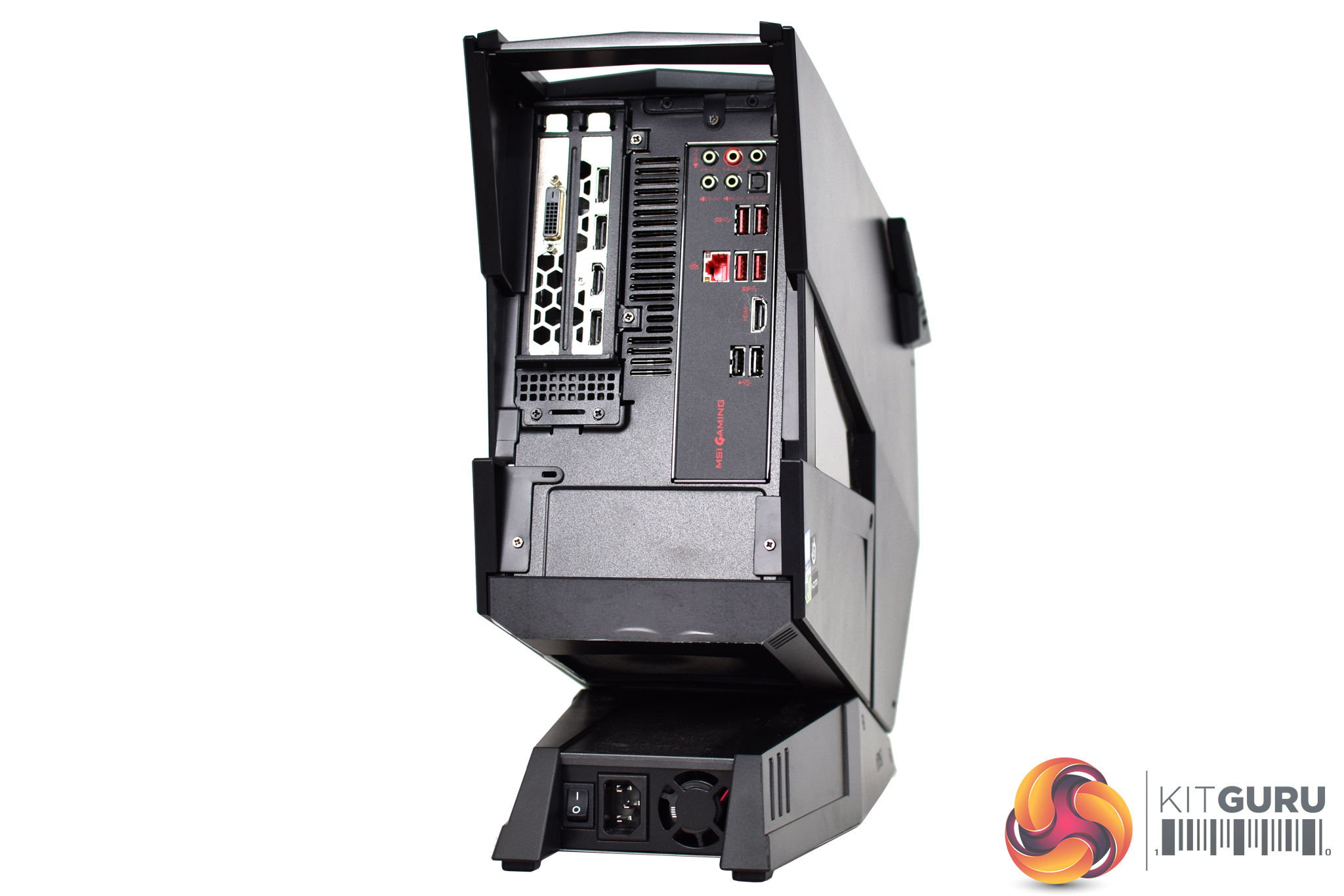 Part of this is thanks to the fact that MSI has implemented what it calls Silent Storm Cooling, meaning the case is comprised of two main chambers – the CPU and GPU sit in the main body of the machine, while the PSU is actually tucked away in the large ‘foot' of the case, so everything is not crammed into a single area within the case.