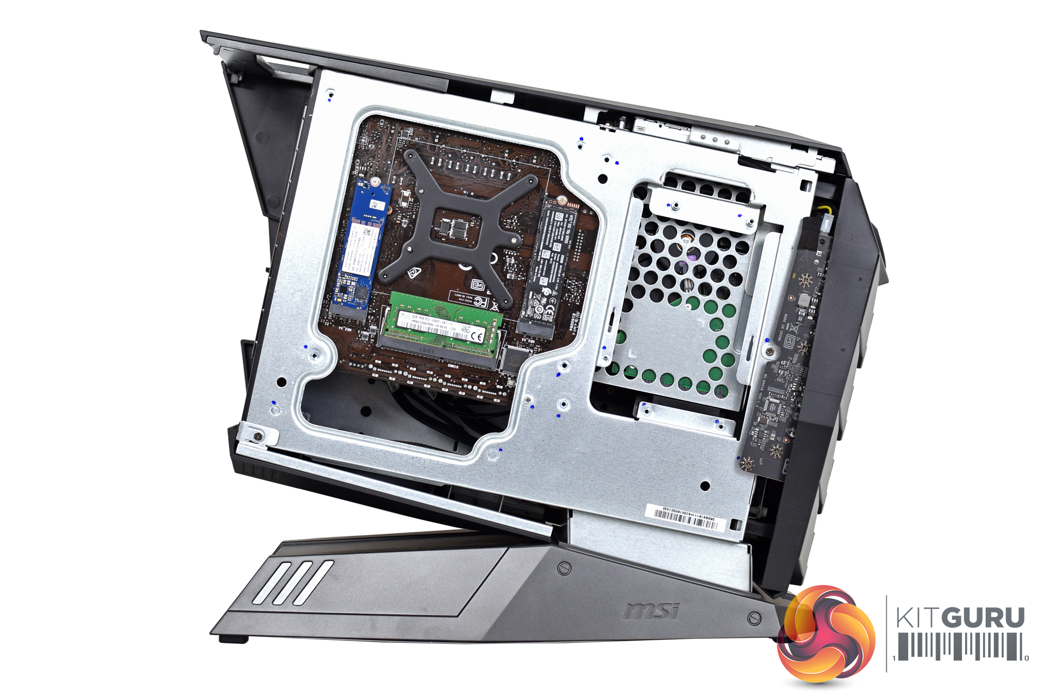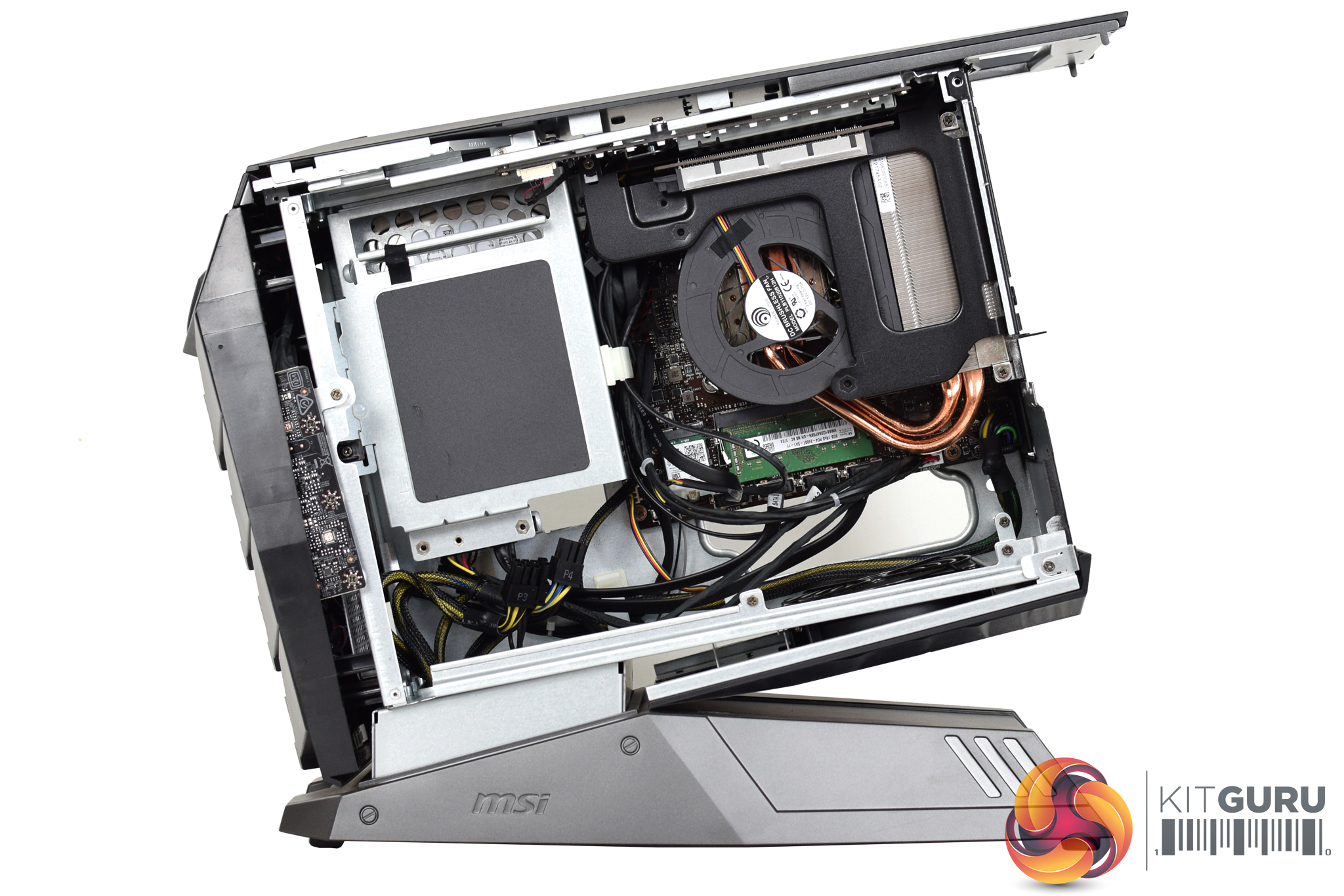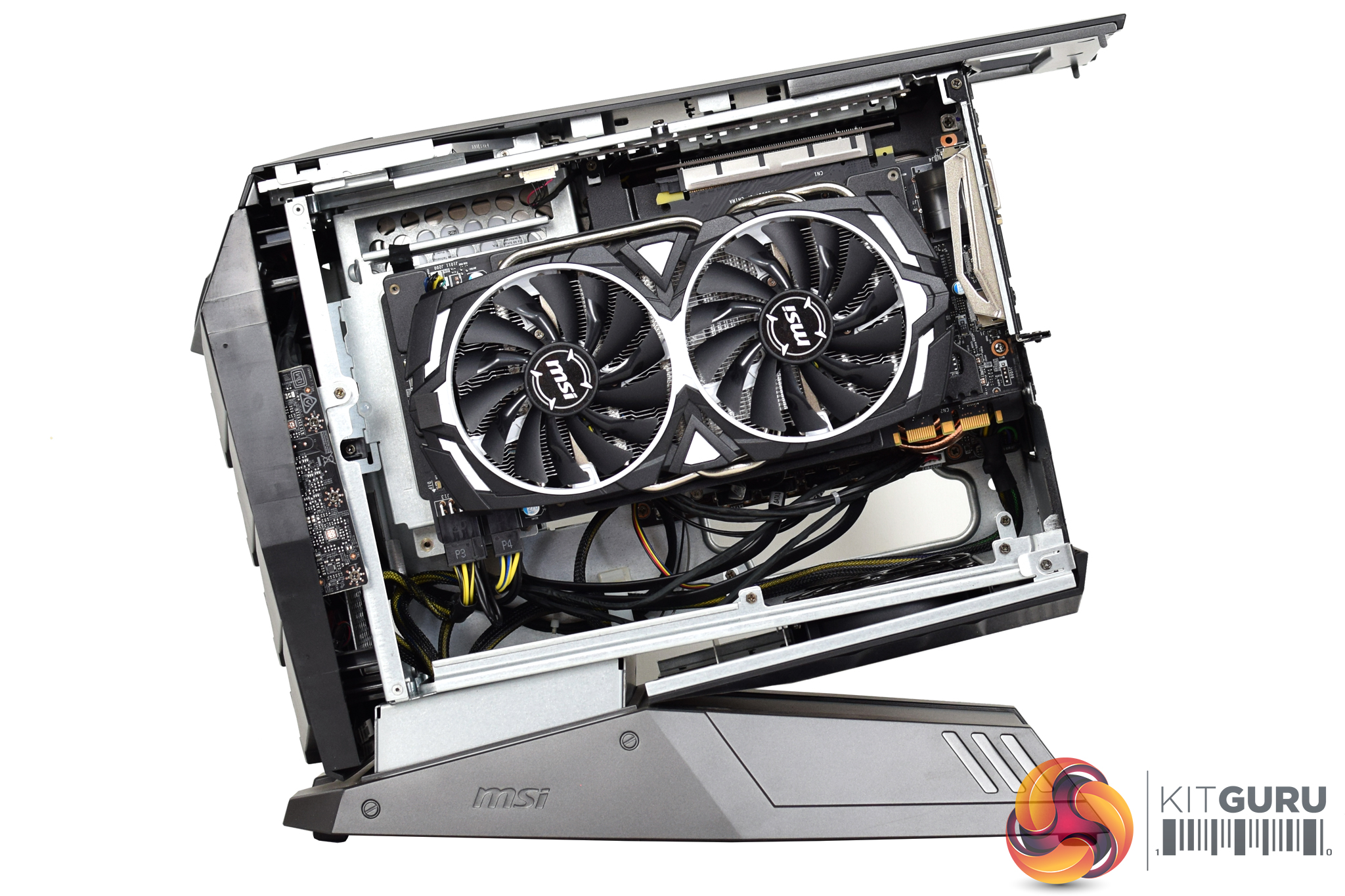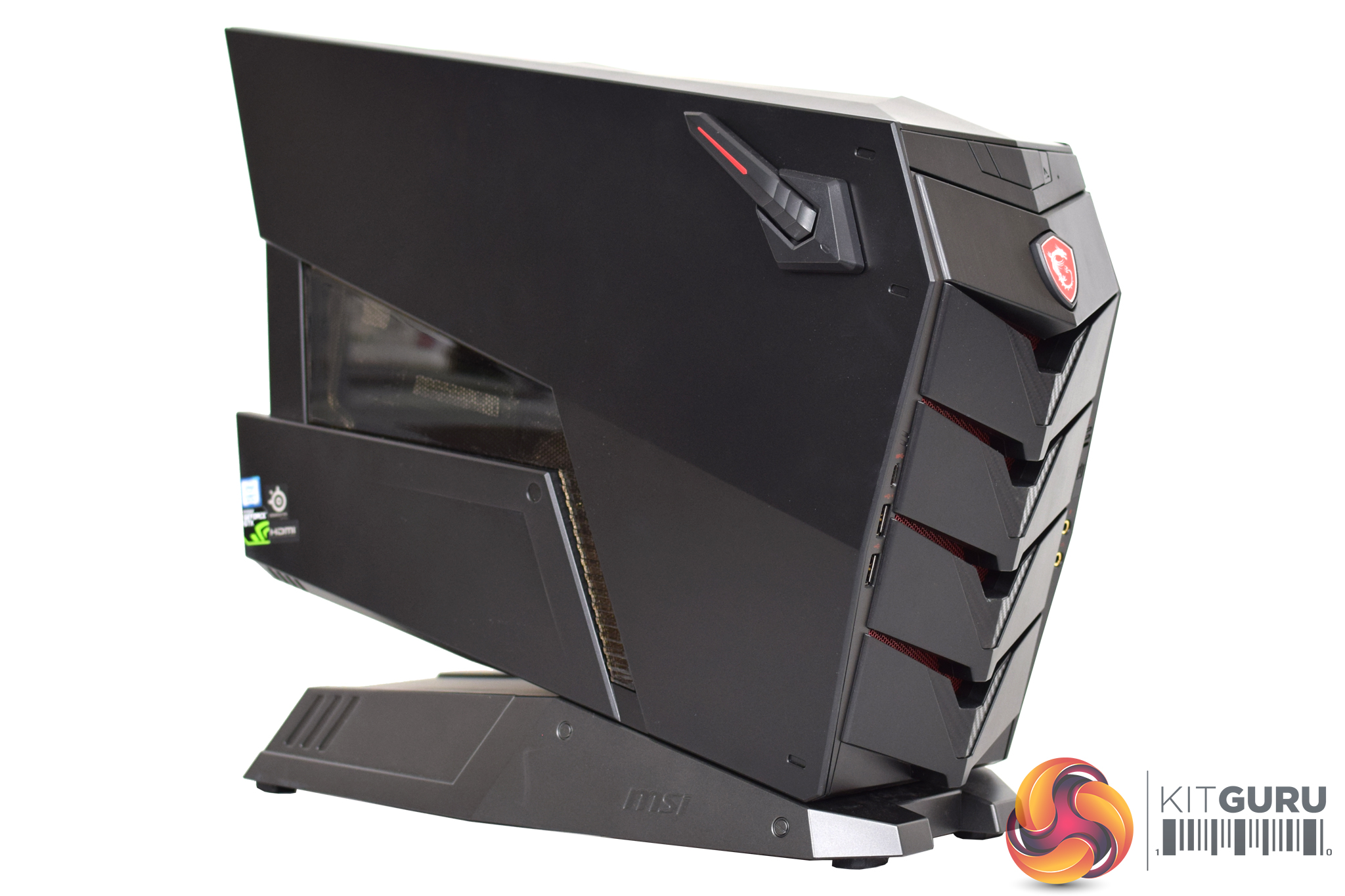 Part of this is thanks to the fact that MSI has implemented what it calls Silent Storm Cooling, meaning the case is comprised of two main chambers – the CPU and GPU sit in the main body of the machine, while the PSU is actually tucked away in the large ‘foot' of the case, so everything is not crammed into a single area within the case.