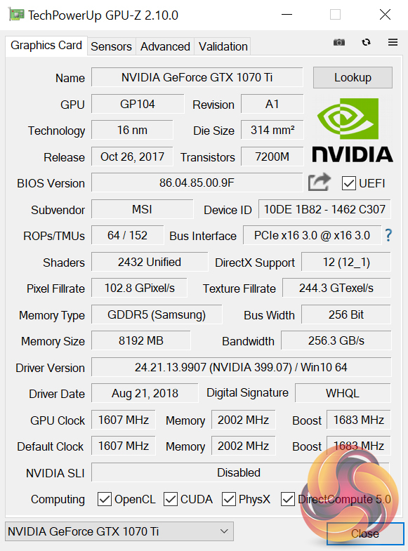 - Graphics: MSI GeForce® GTX 1070 Ti 8GB GDDR5