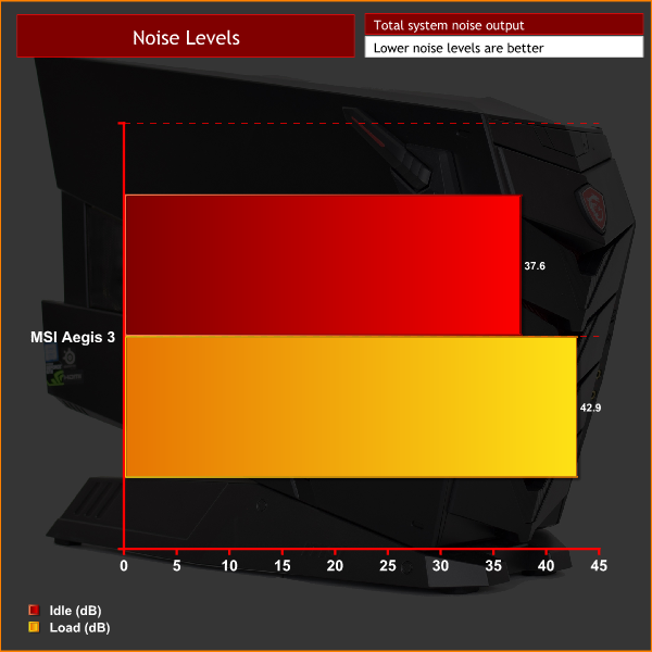 We measured the noise levels of the Aegis 3 with our sound meter positioned 1 foot from the right side of the case.
