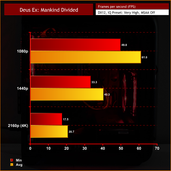 The Gaming XVI Essential is a thoroughly competent 1080p gaming machine. It breezes through less demanding esports titles like Apex Legends, and even Deus Ex: Mankind Divided – known for being particularly hard to run – still averages over 60FPS at 1080p.