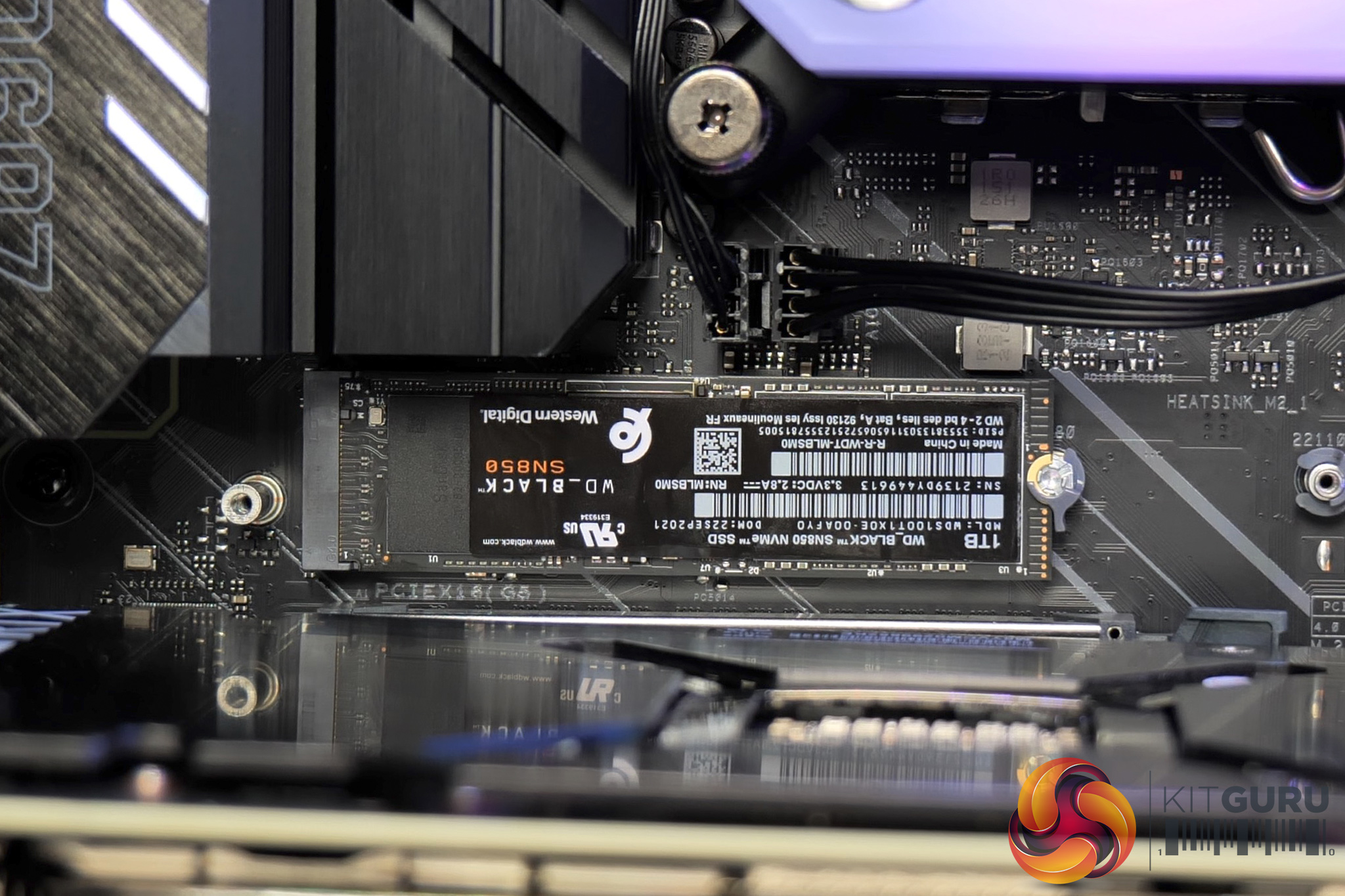 As for storage, the only drive in the system is a 1TB NVMe SSD, installed underneath the motherboard’s SSD heatsink. Taking that off reveals it is a WD SN850, a very fast NVMe drive we have reviewed in the past, though for £2500 I would have hoped for more storage – a 1TB driver will fill up fairly quickly, so an extra 1-or-2TB 2.5in SATA SSD would have been great and they don’t cost much these days.