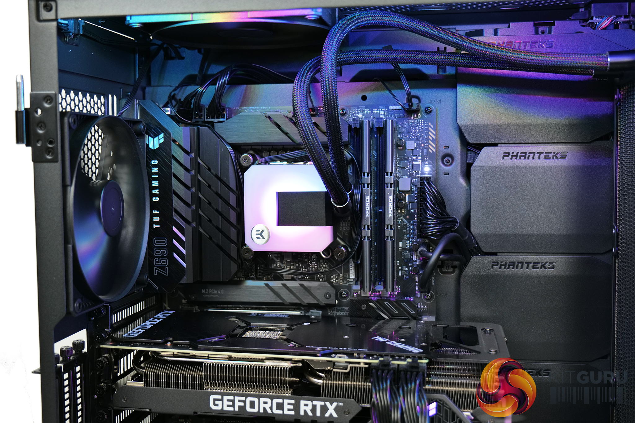 As for the motherboard, OCUK has gone with the ASUS TUF Gaming Z690 Plus WiFi D4. It’s proven to be a solid Z690 board in my testing and has not given me any cause for complaint, and as we show in the video, it runs the 12900KF at 4.9GHz as expected without drawing a ton of power. The ‘D4' in the name is also important as it means the board uses DDR4 memory, a smart decision from OCUK in my opinion as DDR5 is still more expensive and is unlikely to be of much benefit to the type of buyer considering a system like this.
