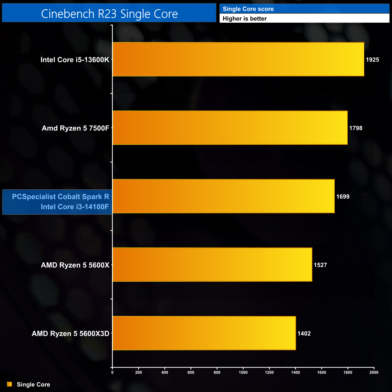 Intel's Raptor Lake processors deliver solid single-core performance however, with the 14100F sitting around 1700 points.