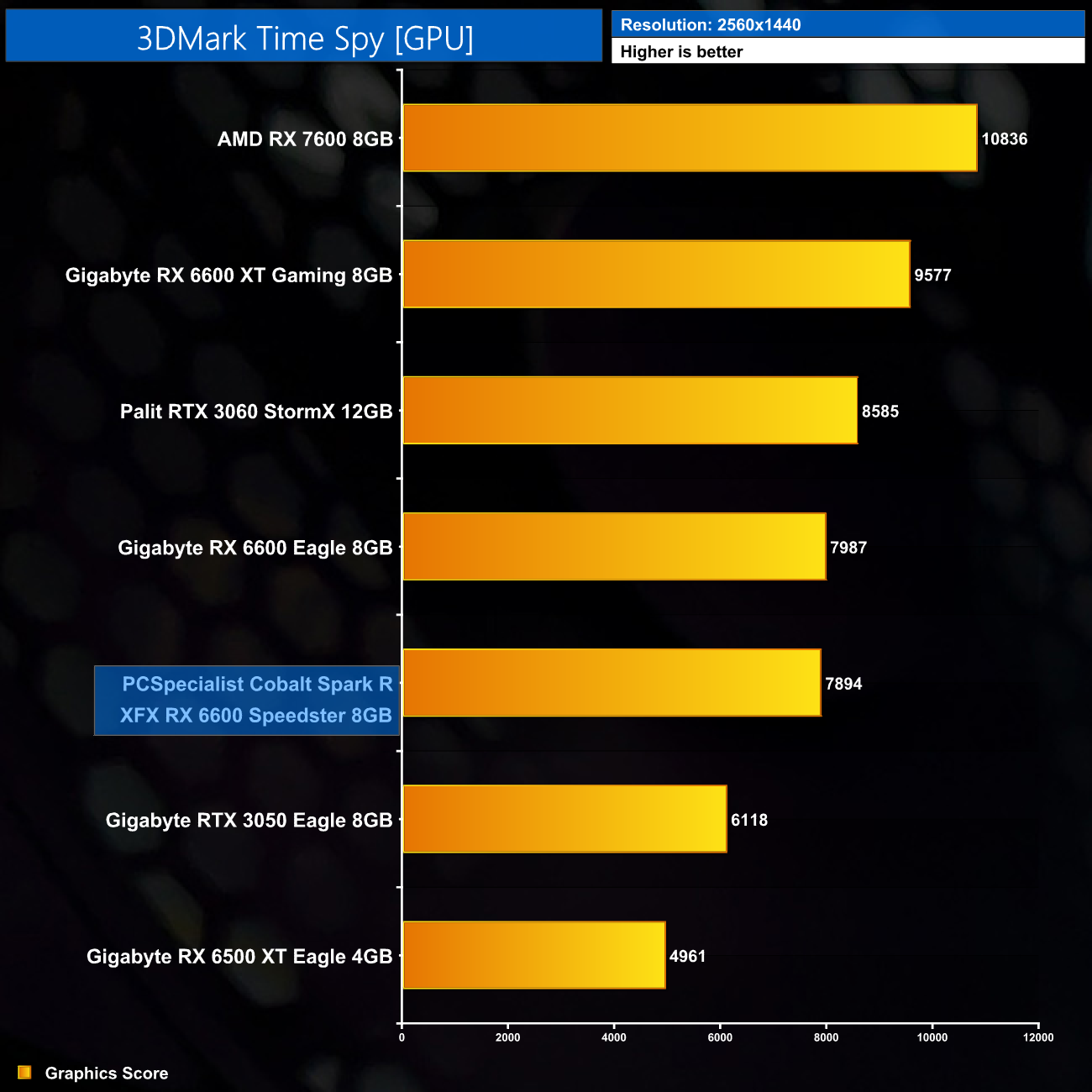 It's also good to see that the XFX RX 6600 used in this system performs as expected, delivering almost 8000 points in 3DMark Time Spy, which is basically the same score that I saw from the Gigabyte Eagle model in my own testing.