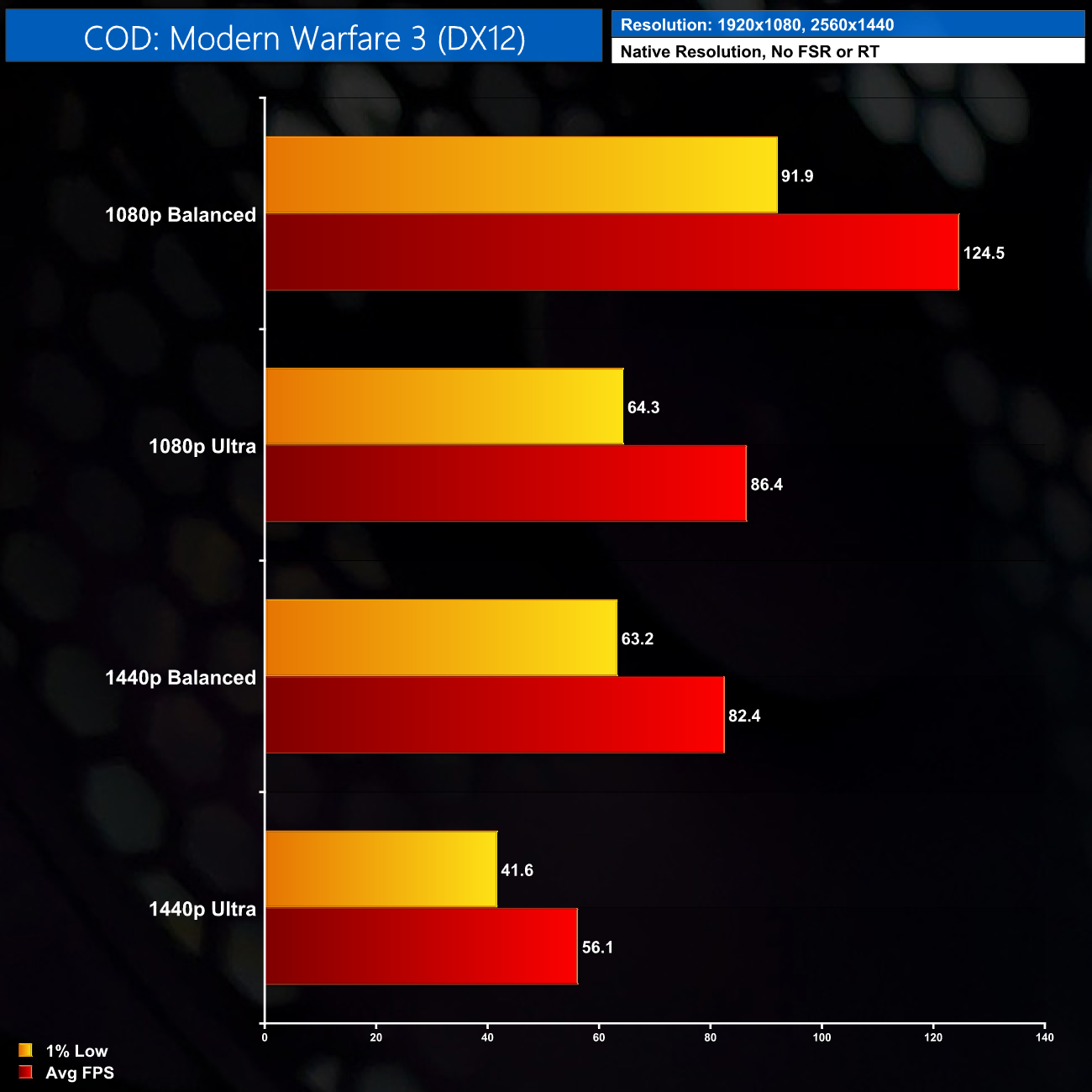 COD: MW3 plays pretty nicely on the Cobalt Spark R, delivering over 120FPS at 1080p using the Balanced preset, and even managing 80FPS at 1440p using the same settings.