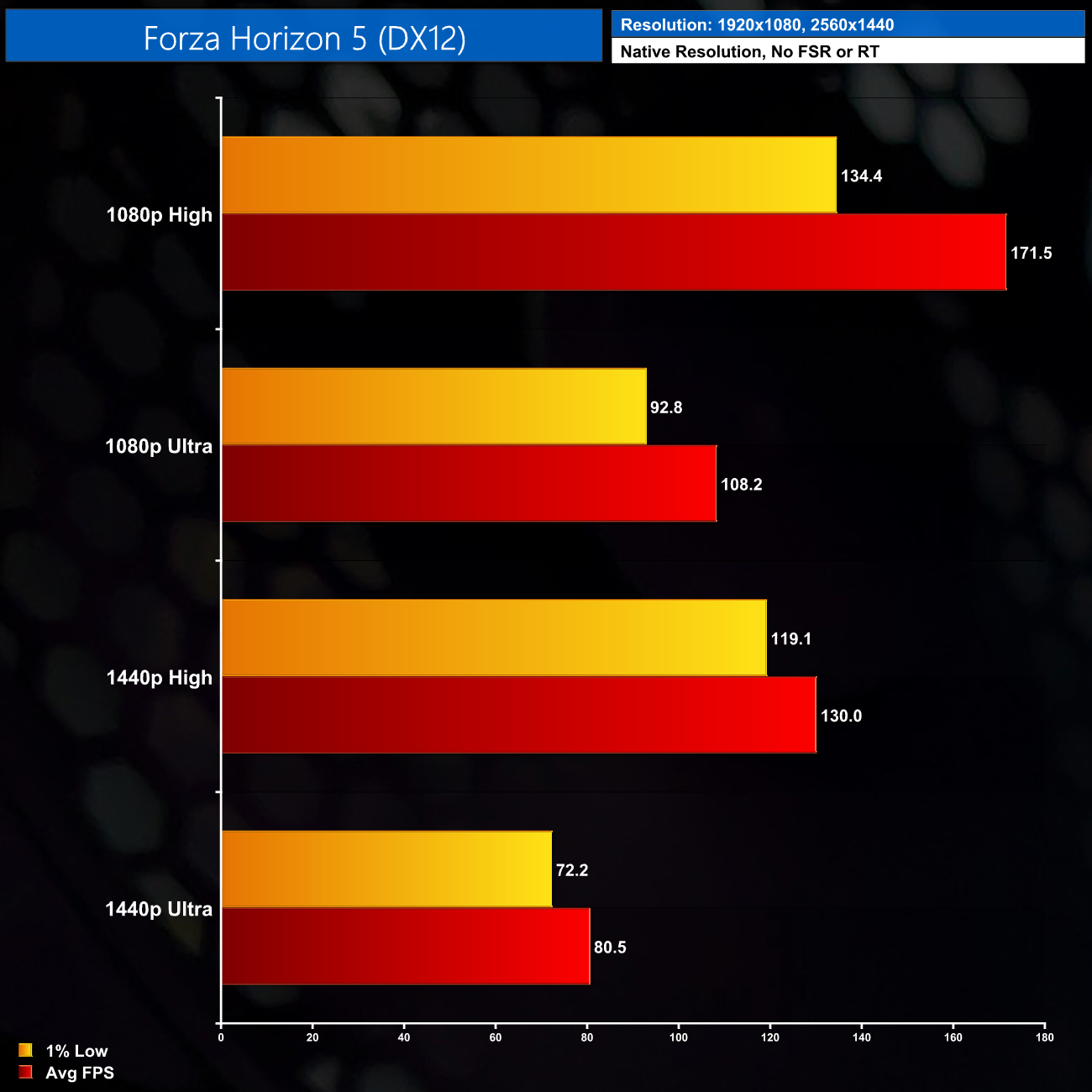 Forza Horizon 5 is very performant across the board, even 1440p using Ultra settings ran very smoothly with tight 1% lows, so I've got no complaints here.