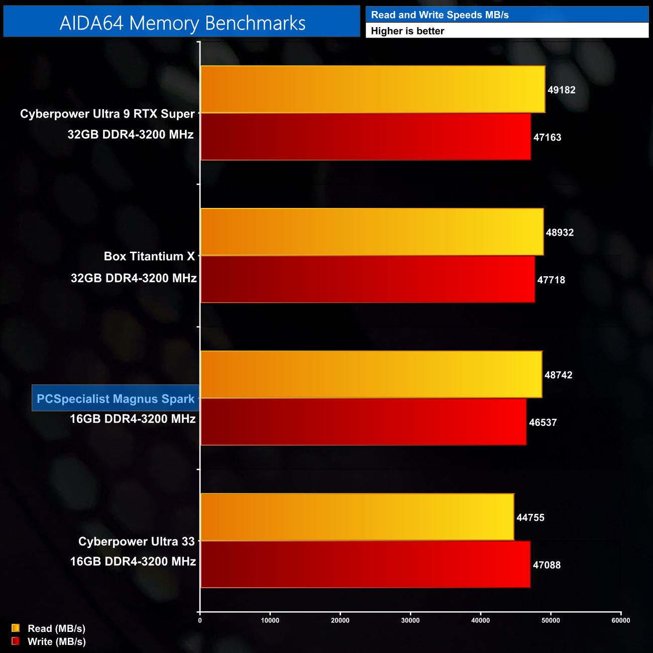 Memory speeds were tested with AIDA64 Engineer, and for 16GB of DDR4 memory things are exactly where they should be, with reads just shy of 49000MB/s, and writes around 46500MB/s.