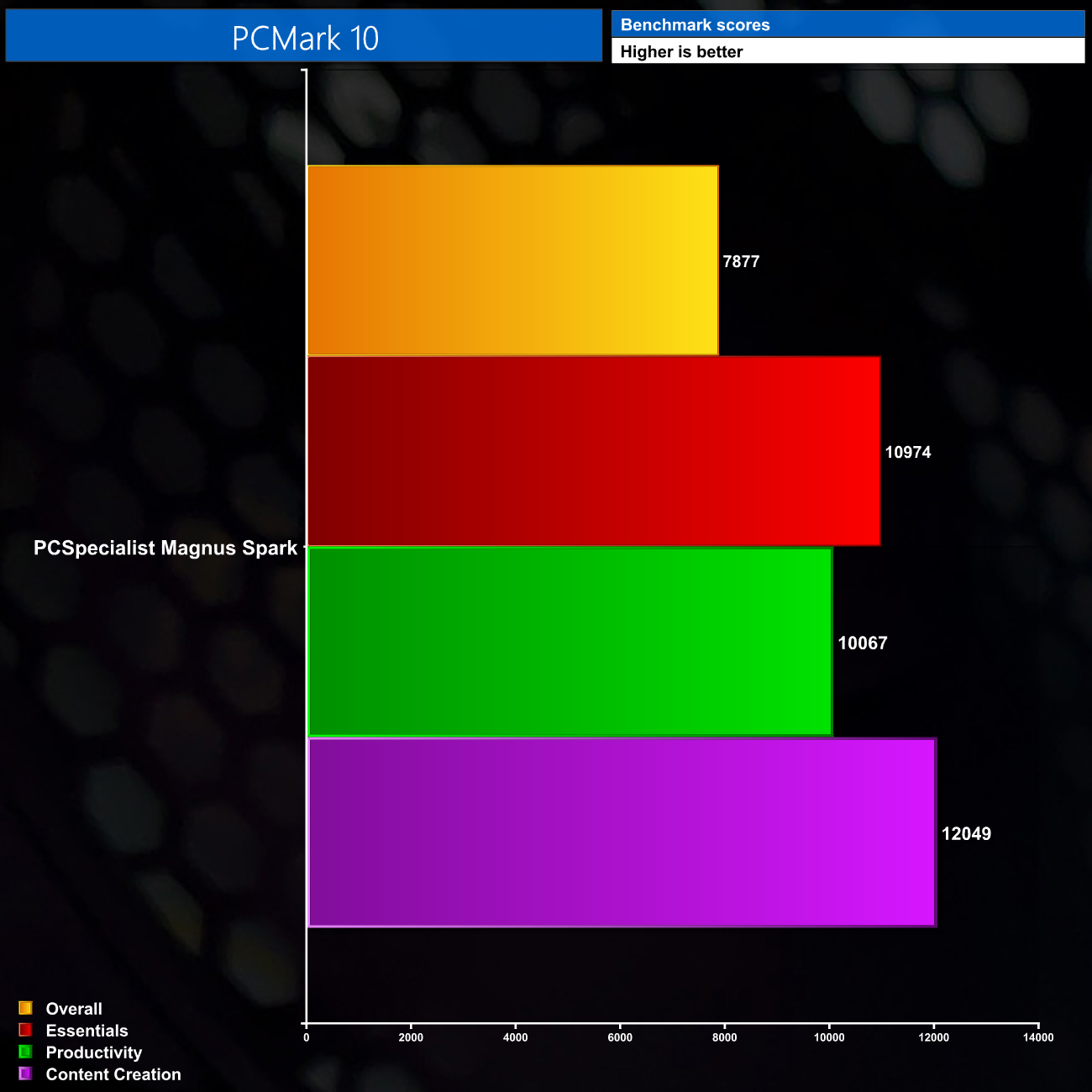 We don't include any direct comparisons for PCMark 10, but this should allow a good point of reference if you want to test your own PC and see how it compares against the Magnus Spark.