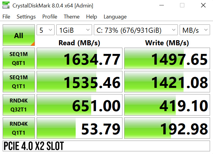 However, I also physically moved the SSD to slot M.2_2 – which is directly adjacent to slot M.2_3, but operates with four PCIe 4.0 lanes: