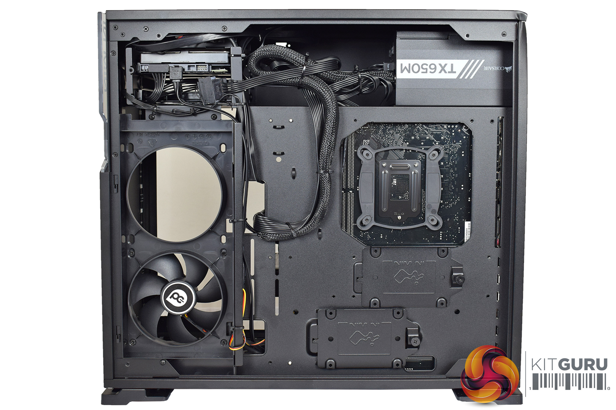 In short, while the case does sport a lovely tempered glass panel and interesting internal layout, the high-end parts do feel a bit out of place in this lower-tier chassis.