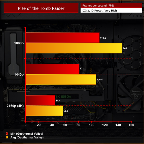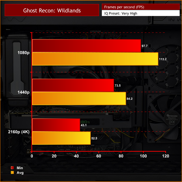 As demonstrated by the above charts, the combination of GTX 1080 Ti and i7-8700K emphatically delivers the goods. You're guaranteed high frame rates at 1080p and 1440p resolutions, while 40FPS seems a rough average for 4K gaming using ‘very high' settings.