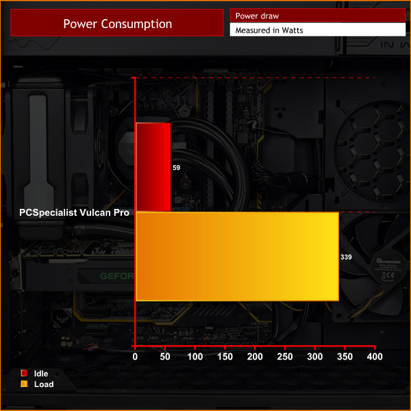 Lastly we come to power consumption. A peak reading of just 339W puts the power draw at just over 50% of the Corsair 650W TX-M's rated capacity, which ensures optimal efficiency and low noise levels as the fan is not having to spin much, if at all. Adding in a second GTX 1080 Ti for SLI is also a possibility, though that would be stretching the power supply to its limits.
