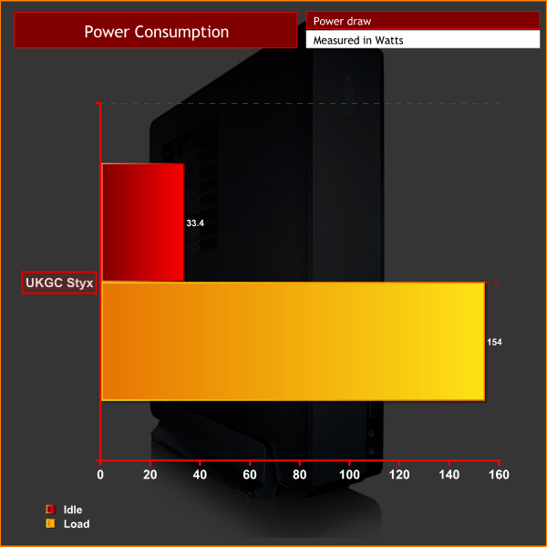 Thanks to the low TDP of both the i5-6500 and the GTX 960, the Styx draws very little power, even under load. Topping out at 154W, I found this meant the fan on the power supply never spins – at all.