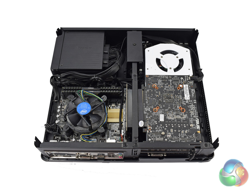 Once four screws are removed from the base of Node 202, we get a first look at the innards. The Node 202 uses a ‘dual-chamber' design, with the bulk of the components situated in the top half of the case. The GPU sits on its own in the bottom half.