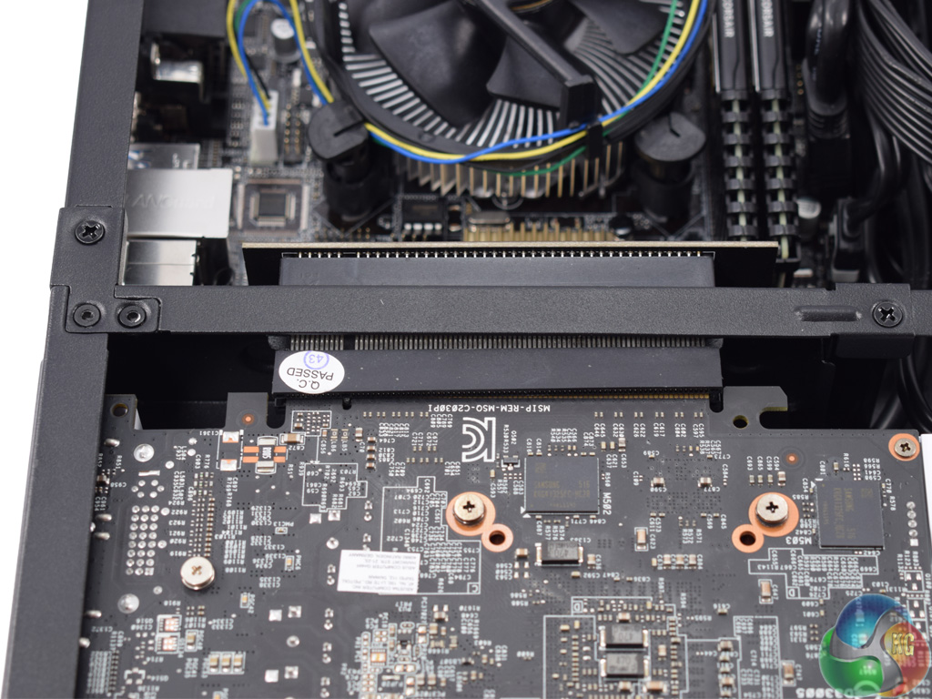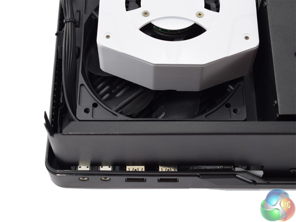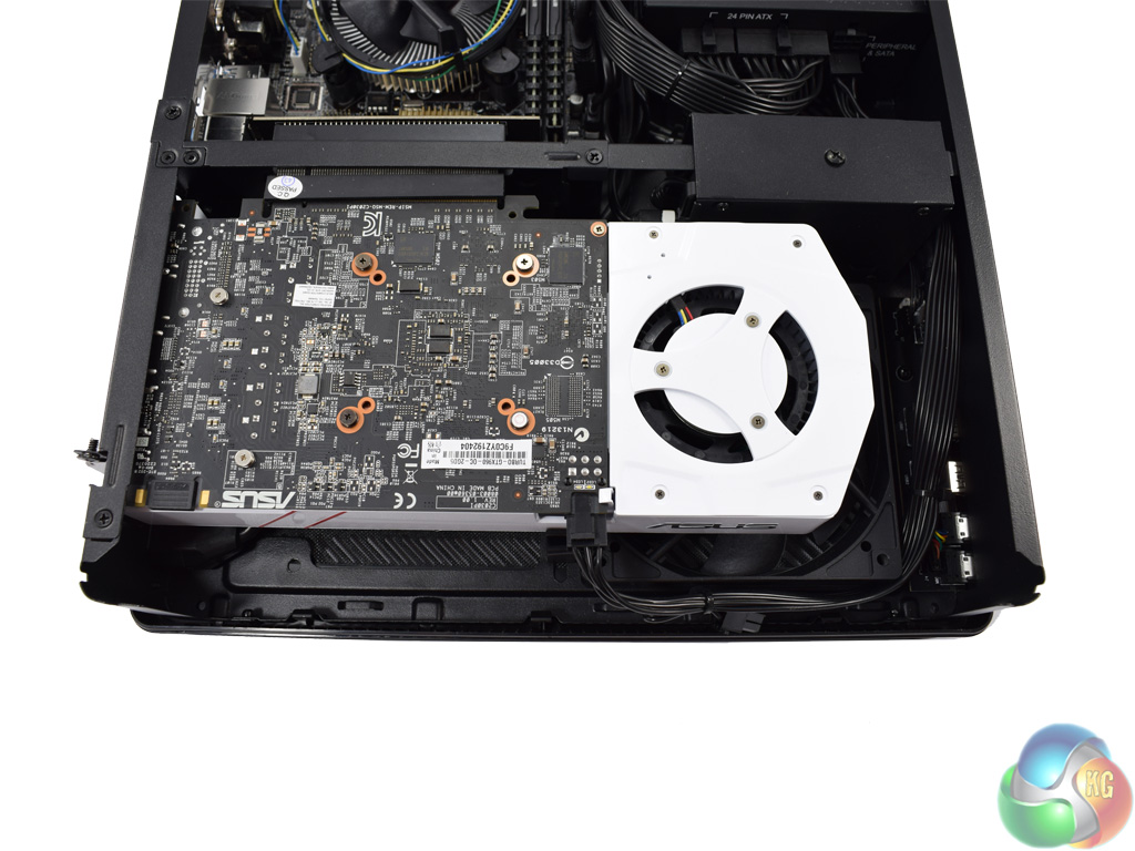 Just under the GPU is the sole intake fan, which directly feeds the graphics card.