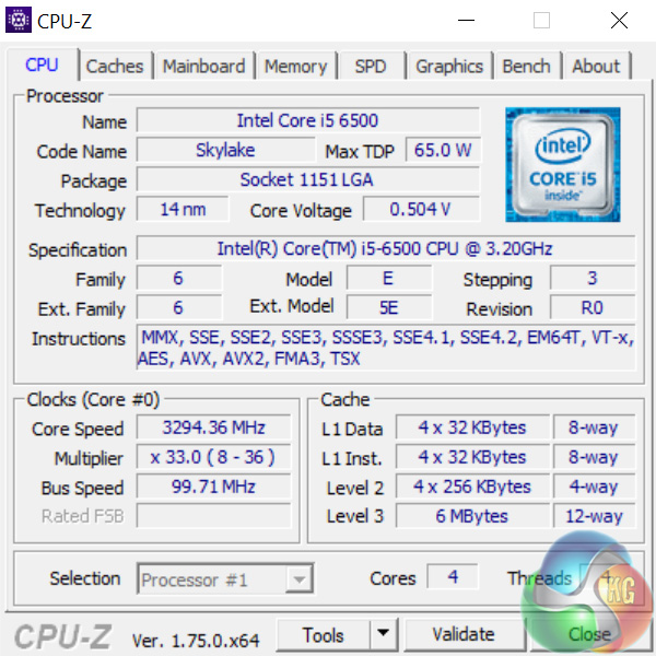 The UKGC Styx has the i5-6500 at its heart, which has a base clock of 3.2GHz and turbos to 3.6GHz, while its TDP is just 65W. Above you can see an overview of the processor thanks to CPU-Z.