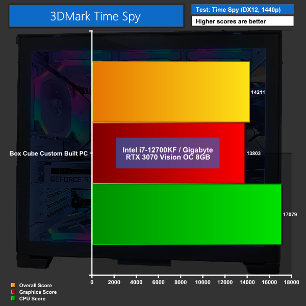 Now let’s look at our graphics card results. Looking at 3DMark Time Spy we can see the system performed well overall and excelled in the CPU part of the test.