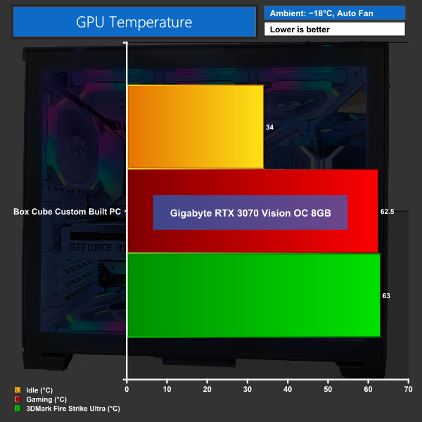 GPU temperatures were kept very cool here, staying below 65C even after all our strenuous game tests.