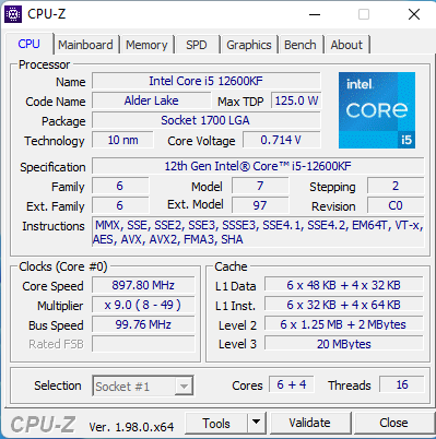 - CPU: Intel i5 12600KF – 10 core, 16 thread 6P @3.70ghz-4.90ghz/ 4E @2.80Ghz-3.60Ghz
