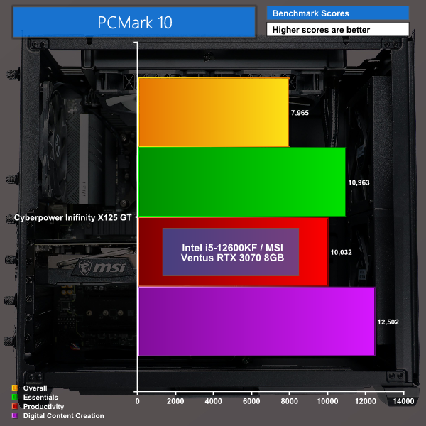PC Mark 10 shows how well the system performs at a variety of tasks and where it excels, scoring very well across the board but really excelling in the Digital Content Creation tests.