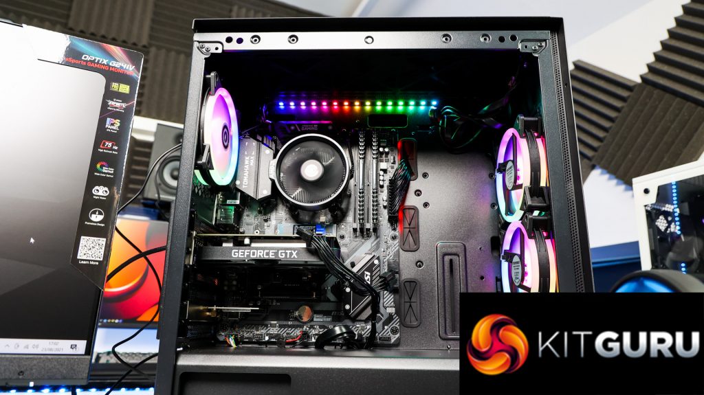 Build-wise, everything looks to be in order too, it has been tidily cable managed inside with plenty of room for airflow too. I like the inclusion of the RGB fans and there’s even an RGB LED light strip across the top as well, all of which can be adjusted via the included remote.